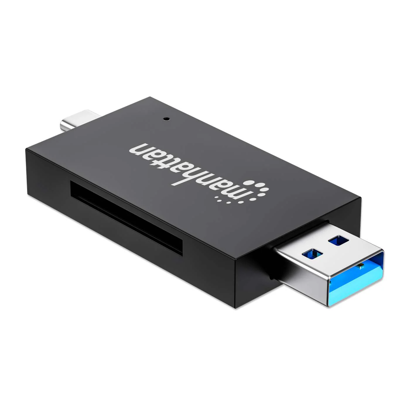The versatile Manhattan USB 3.0 Type-C / Type-A Combo Multi-Card Reader/Writer is a reliable and efficient USB solution for managing your flash cards. It lets you access and transfer data seamlessly, which is particularly useful since most modern host devices no longer feature onboard memory card slots.